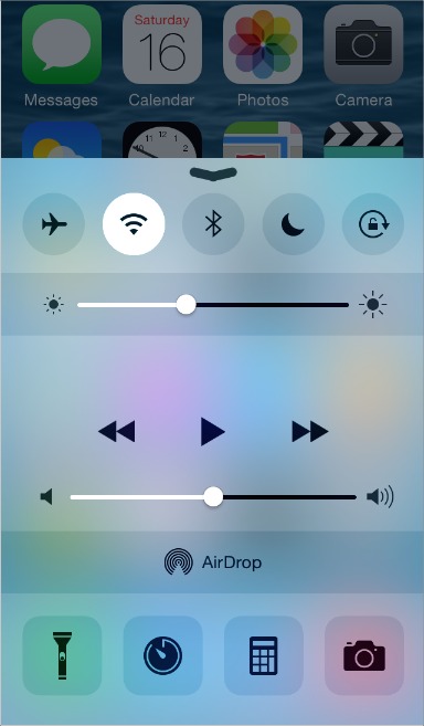 尝试使用半透明底板。半透明的控件——比如控制中心——关联了使用场景,帮助用户看到更多可用的内容,并可以起到短暂的提示作用。在iOS中,透明的控件只让它遮挡住的地方变得模糊——看上去像蒙着一层米纸一样——它并没有遮挡屏幕剩余的部分。