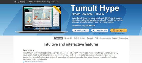 你可以使用Tumult Hype来创建美丽的HTML 5 Web内容。用其创建的内容是交互的并拥有伟大的动画功能。你可以在桌面、智能手机和iPad上使用这个框架,它不需要你有编码知识。
