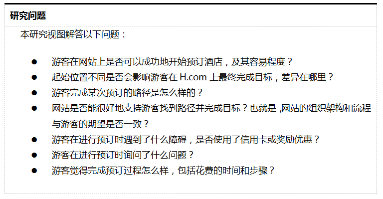 下图5-2 给出了某个在线酒店预订网站的可用性测试的研究问题。