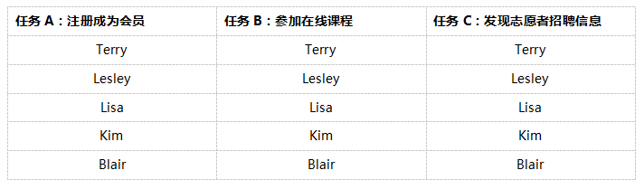 最简单的测试设计:测试几名不同用户,用户均属于同一类型(如老年人),要求他们完成网站不同部分的某些有代表性的任务。