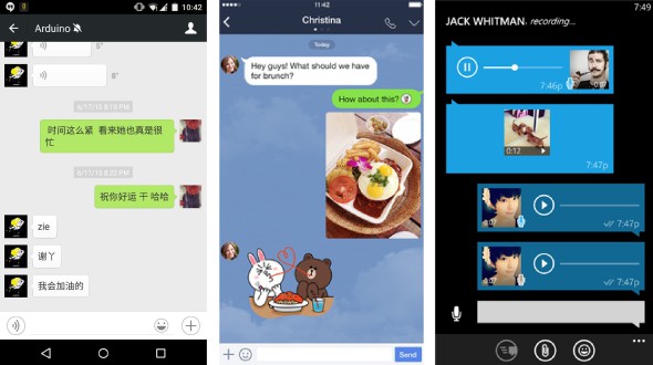 上图是三个操作系统中的三款聊天产品,可见聊天软件再改变,聊天界面的基础格局也很难变出花来。所以虽然市场上聊天产品很多,但它们却在某种意义上做着同一件事——培养用户在聊天界面中的互动习惯,只消输入-发送,对话就此开始。