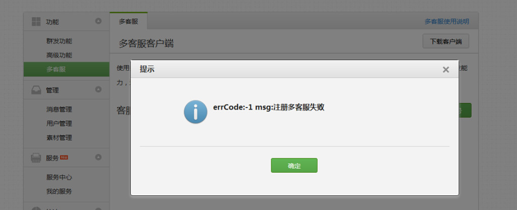 第一张图是笔者在公众平台申请多客服失败时的提示,既没有告诉笔者失败的原因又没有告诉笔者遇到这种情况的解决方案,害的笔者以为是不满足申请多客服的条件,还反复检查了好几次。