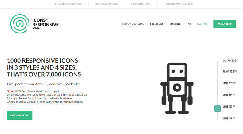 Icons Responsive网站看起来好像很忙碌,因为有太多有趣的东西的缘故吧。有一个动画很值得你关注,那就是有着简短描述、辨识度高的导航栏。尽管内容很饱满,但那两个强烈的绿色按钮却很夺目。