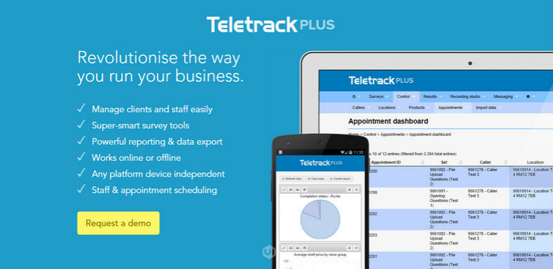 Teletrack Plus华丽务实的气氛给人信任和可靠性。尽管登陆页面有设备模型和功能列表的元素,但相对较小,高饱和度黄色按钮的放置是多么引人注目。跟往常一样,巧妙地选择避开主要的色彩基调以达到突出某一元素的功效。