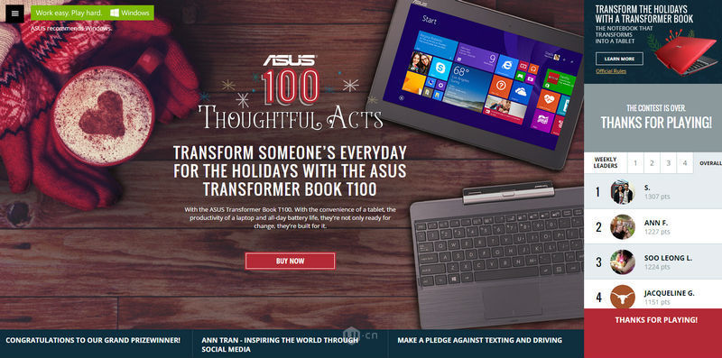 100 Thoughtful Acts是一个给人一种无比注重美学印象的网站。然而,细小的CTA是一个由文本和色彩组成。红色的基调显然是最明确的选择,它令按钮融合到环境中,而不是从中脱颖而出。