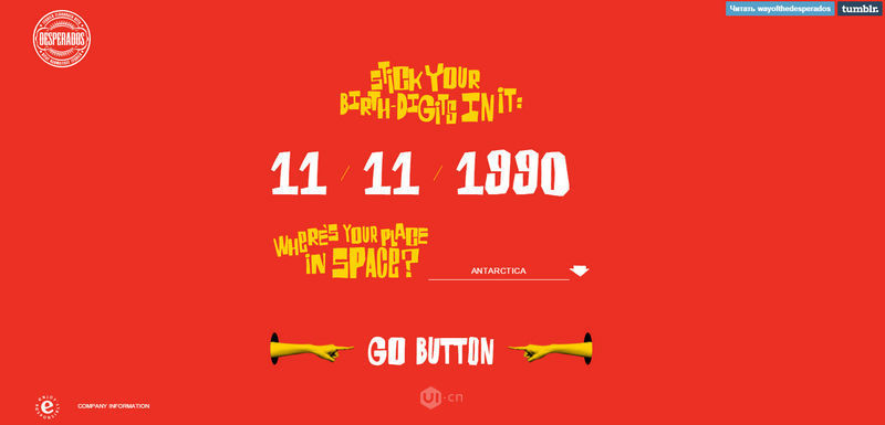 该网站设计师设计的按钮看起来是那么的独特和引人注目。采用一个明亮的黄色阴影、以及对比度突出的背景,这两点足以彰显出艺术家的气息。