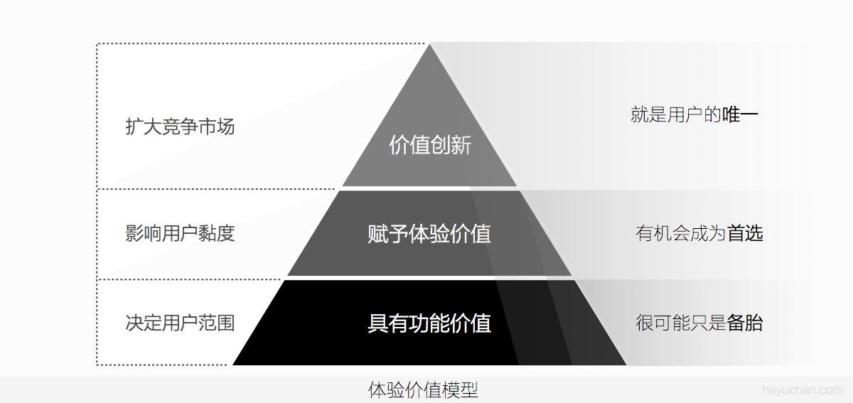 基于商业环境下的服务设计,我们把体验价值分为三个层次: