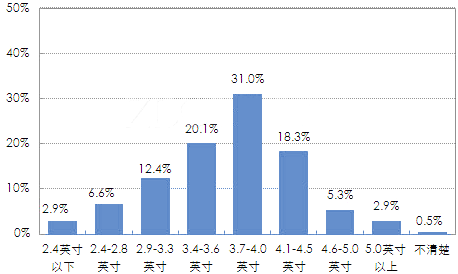 智能手机用户在使用过程中对屏幕尺寸的感觉: