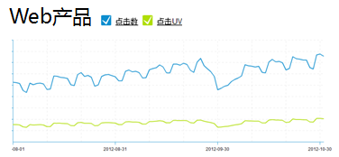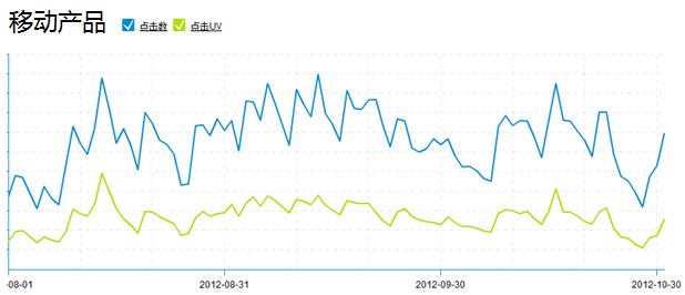 从下方两张图表的走势对比,开始我们走近移动设计之旅的应用场景篇。一个好的Web产品,他的点击数和点击UV是随着时间的发展,走势是慢慢上扬,如下图所示。而移动产品却有一个很有意思的现象,每个月初点击数和点击UV走势突然上扬,峰值在月中左右,然后到月底就跌到底谷。如下方两个图的对比,猜猜这是为什么?