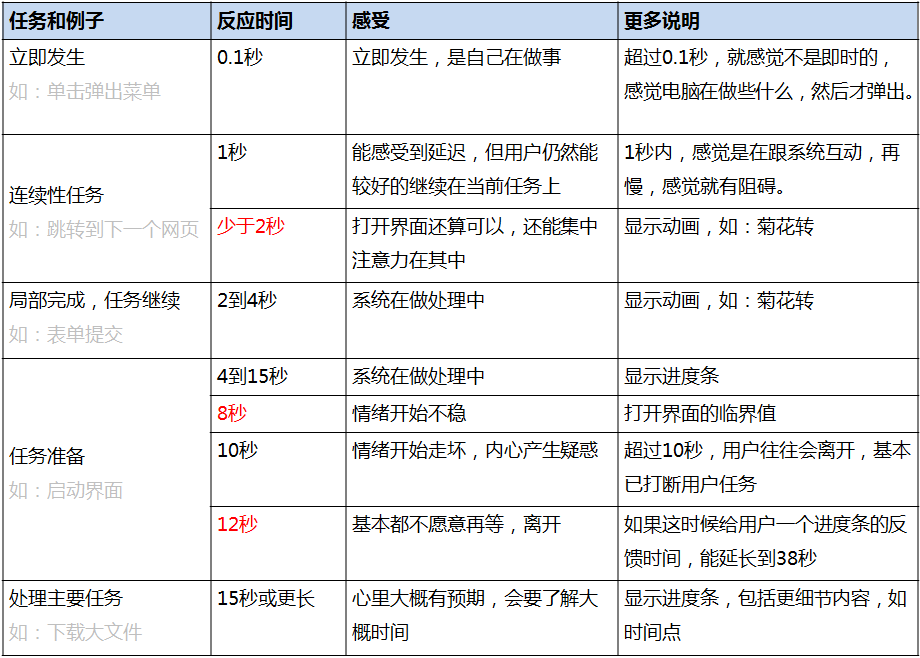 所以别让你的产品让用户等太久,都走光了。这里就可以考虑适合的响应机制。比如优先加载框架,给用户的感觉是立即有相应了,且已有部分内容出来了。