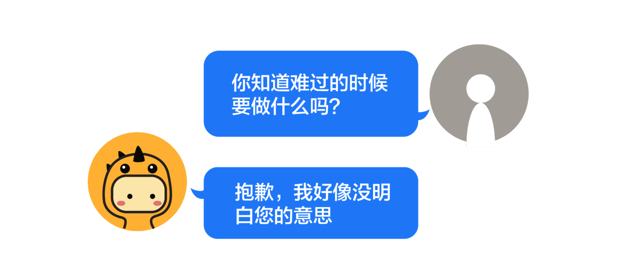 机器人毕竟还是机器,很多时候可能无法理解用户更深层次的意图,这个时候如果遇到错误,就需要协助用户恢复。比起传统的UI界面,这个时候对话机器人体现出了自身的优势。机器人对话对于错误的回复形式可以更加多样随机,不仅限于表情,还有图片,甚而还有GIF动图,而这些多样的形式,通过拟人的机器人界面展现,便可能使得这个反馈更能引起共鸣,似乎是一个犯错的朋友请求原谅一般