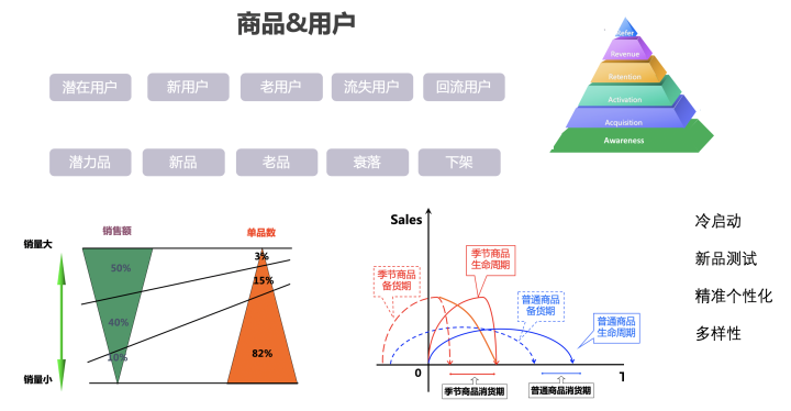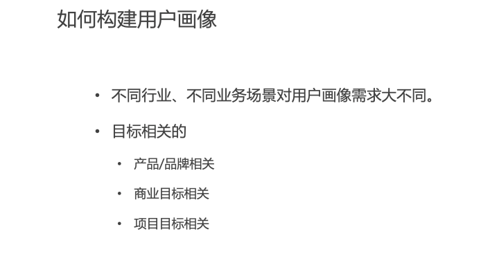 然后第二点,构建什么样的用户画像,比如说用户是男性还是女性,她工资多少,喜欢什么样的商品。这些标签可能是「没有意义」的,如果要说「有意义的地方」是这些标签如何去「影响决策」,如何为用户带来更好的体验,带来「更高的留存、复购」。