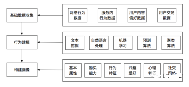 再次就是可以从层级的角度来看,用户基本属性和行为标签为「浅层用户画像」,这些标签画像主要是「收集」就行,比如年龄,性别。第二层是稍作处理的「汇总层」,比如手机端大概什么时间活跃,经常购买的品类等。第三层是基于前2层可以做到营销的敏感度,社交关系,上网时间的预测;最后一个是更深层的,需要「结合业务知识去做定制」。比如保险领域的高中低价值、贷款需求程度,风险高低等。