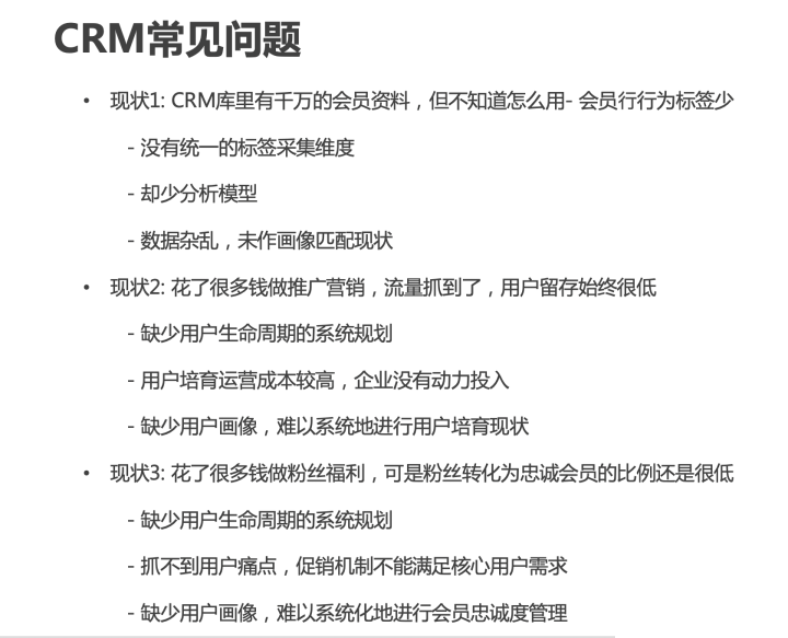 再讲一个概念就是「CRM」,业界有很多探讨,其中也有一些问题点,如上图,后面分享我们对CRM可以专门展开。