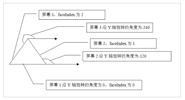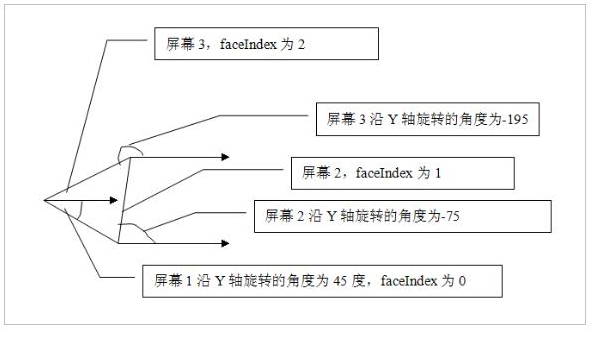 下图为屏幕 1 沿 Y 轴旋转 45 读后其他两个屏幕需要沿 Y 轴旋转的角度。