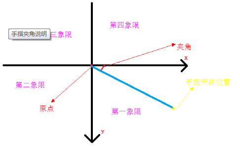 下图为手指与view中心的夹角(这里的原点就是view的旋转中心):