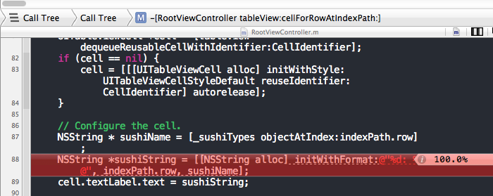 这个比较明显,sushiString被alloc和init之后就没有释放,可以用stringWithFormat来调用autorelease,代码如下: