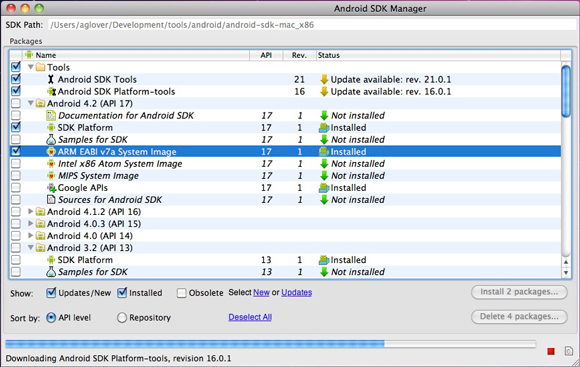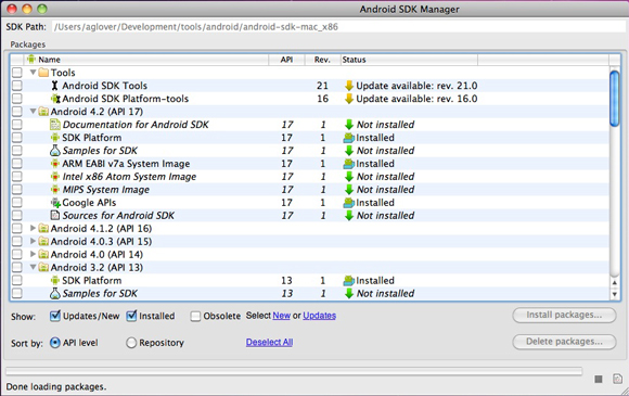 Android 库。为您的操作系统下载基础 Android SDK 后,可以访问 SDK 安装目录的工具目录,并运行