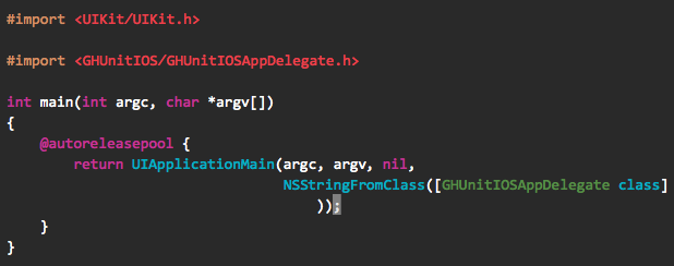 删除Tests Target中的AppDelegate(.h和.m一起删除)。修改main函数,支持GHUnitIOS,导入GHUnitIOSAppDelegate代替原来的AppDelegate,修改UIApplicationMain的参数(如图9)。