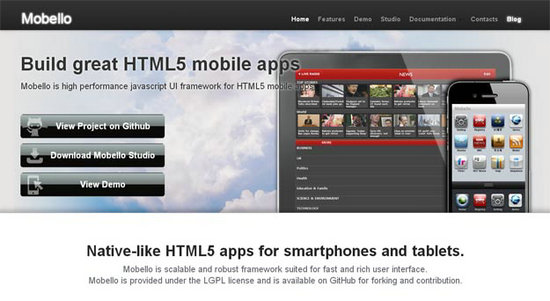 Mobello是一个开源JavaScript UI框架,目的是简化移动Web应用的开发过程。利用该框架,可在移动端提供与本地应用相似的体验。它针对触控事件进行了优化,并提供20多种广泛应用的UI组件。它还提供了集成开发环境Mobello