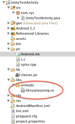 好的,我们终于把Android的工程建立完毕。接着我们需要把工程拷贝至Unity的Android插件中,