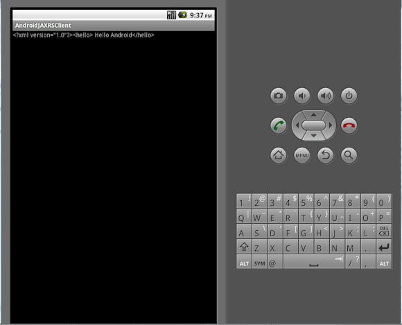 重新运行 AndroidJAXRSClient 应用程序以获取文本消息输出,如图
