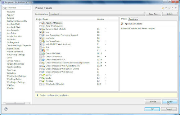 Web Services) 1.1 项目 facet。单击 Further configuration