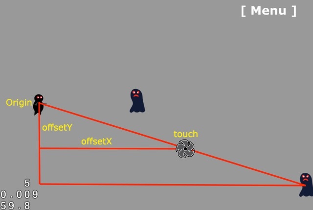 - (void)touchBegan:(UITouch *)touch withEvent:(UIEvent *)event { // 1 CGPoint touchLocation = [touch locationInNode:self]; // 2 CGPoint offset = ccpSub(touchLocation, _player.position); float ratio = offset.y/offset.x; int targetX = _player.contentSize.width/2 + self.contentSize.width; int targetY = (targetX*ratio) + _player.position.y; CGPoint targetPosition = ccp(targetX,targetY); // 3 CCSprite *projectile = [CCSprite spriteWithImageNamed:@"projectile.png"]; projectile.position = _player.position; [self addChild:projectile ]; // 4 CCActionMoveTo *actionMove = [CCActionMoveTo actionWithDuration:1.5f position:targetPosition]; CCActionRemove *actionRemove = [CCActionRemove action]; [projectile runAction:[CCActionSequence actionWithArray:@[actionMove,actionRemove]]]; } |