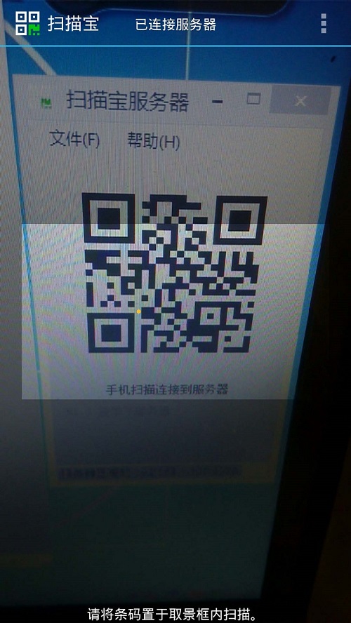 4、使用手机运行 扫描宝 应用,扫描服务端的二维码,与服务器成功连接;