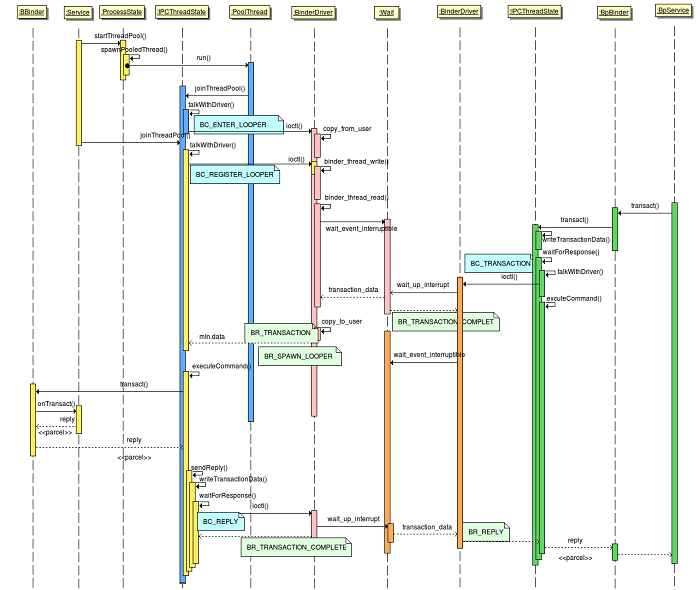 2. 这个service的binder线程在proc->wait 队列上进入睡眠等待。等待一个binder_work的到来。