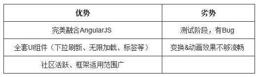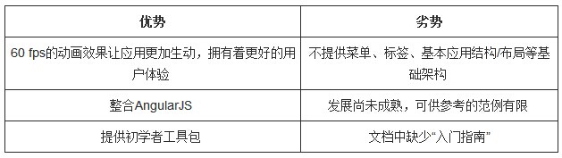 和Ionic一样,Onsen UI提供了一套完整的指令(HTML自定义元素),很贴心地帮开发者避开了弯路,保证开发过程严格遵循业务逻辑。虽然Onsen UI社区没有Ionic那么活跃,但同样人才济济,未来,Onsen UI的提升空间还是很大的。其次来谈谈框架本身,Ionic和OnsenUI都具备下拉刷新、列表、标签、菜单等工具,但Ionic更用心,可以往AngularJS的控制器里注入服务,以对其实现控制。