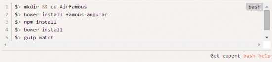 要启动一个Famo.us+ AngularJS项目,只需复制一下初学者工具包或使用Bower管理工具来安装即可。