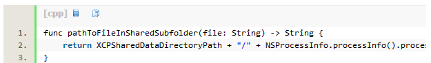 如果你喜欢使用很多Playgrounds,你将需要在上述共享目录下为每个Playground新建对应的子目录,来存储每个Playground用到的数据;但是那之后你需要告诉每个Playground在哪儿可以获取其对应的数据。下面是我常用的一个辅助解决方法: