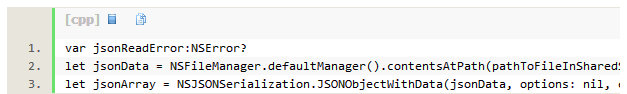 processName属性是Playground文件的名字,因此只要你已经在Playground数据共享文件目录下以相同的名字新建了一个子目录,那么你可以很容易访问这些数据,和读取本地JSON数据一样: