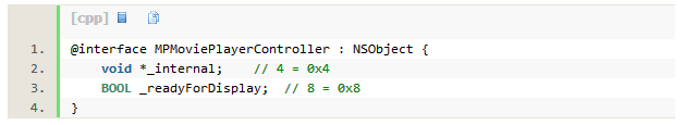 因为 id internal=[moviePlayerController valueForKey:@”internal”] 无效,下面有一个笨办法来取得这个变量: