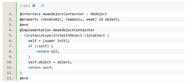 不幸的是,关联对象OBJC_ASSOCIATION_ASSIGN策略不支持引用计数为0的弱引用。幸运的是,你可以很容易实现它,你仅仅需要一个简单的类,并在这个类里弱引用一个对象: