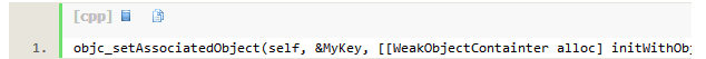 然后,通过OBJC_ASSOCIATION_RETAIN(_NONATOMIC)关联WeakObjectContainter: