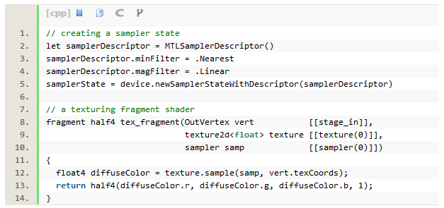 Warren:我所用的着色器都是用Metal着色语言写的。我们基本上在Swift/Objective-C中编写客户端代码,然后运行在CPU的代码使用的是源于Metal着色语言的C++编写的。