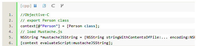 创建Person类之后,需要先将其导出到JavaScript环境中去,同时还需导入Mustache JS库,以便对Person对象应用模板。