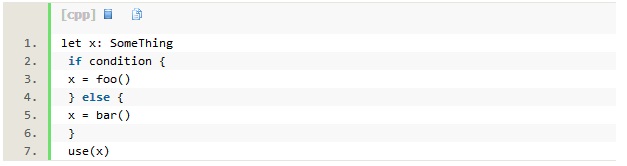 - 结构体和类构造器中的let不可变属性现在被规范为更加标准的通用模型:lets类型初始化后将永不会被改变或重新赋值。以前的实现是,可以在构造器中任意修改,而现在它们只允许被初始化和提供值操作。如果一个属性在声明时已经赋值,那么它会被所有的构造器认为已经含有初始值。