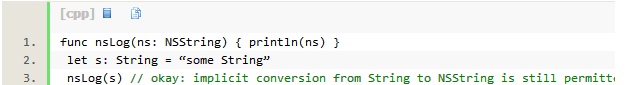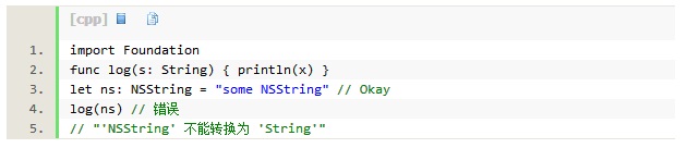 从Swift类型到Objective-C类型的桥接隐式转换依然被允许,比如: