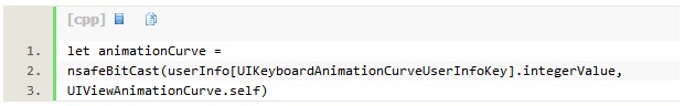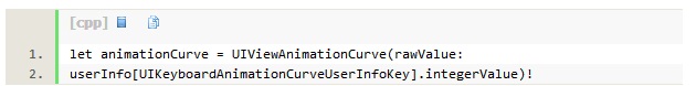 - 导入的没有文档化的NS_ENUM类型,比如UIViewAnimationCurve,现在可以通过init(rawValue:) 构造器从它的原始整型类型转换出来而不会重设为nil,为解决这个问题而用替代方法unsafeBitCast编写的代码现在可以使用原始值构造器编写了。比如: