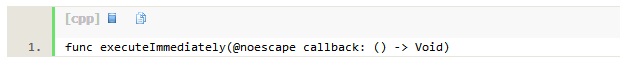 - C指针类型的参数或者Block指针类型可以使用noescape新属性标志,它用来标明这个指针参数不会离开这个函数或者方法而使用。这种情况下,可以安全的传递一个局部变量地址,noescape block指针在Swift中将会被映射为@noescape参数: