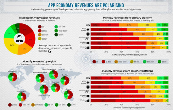 平台应用收入的PK战:iOS更赚钱,Android、BlackBerry和WP差距小