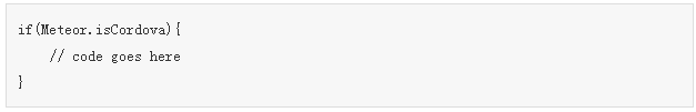 通过Meteor创建移动应用,你可以一次编写大多数功能。大多数代码将跨平台工作。但是并不是所有的代码都应该跨平台的,同样我们可以通过isClient和isServer条件语句控制某些代码是否运行于客户端或服务端,当然也包括isCordova条件语句: