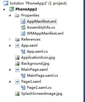 MainPage.xaml : 程序启动后默认显示的第一个页面,用户也可以在WMAppManifest.xml中指定启动页面。