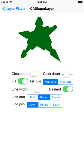 图层演示应用中,你可以随意修改很多CAShapeLayer属性: