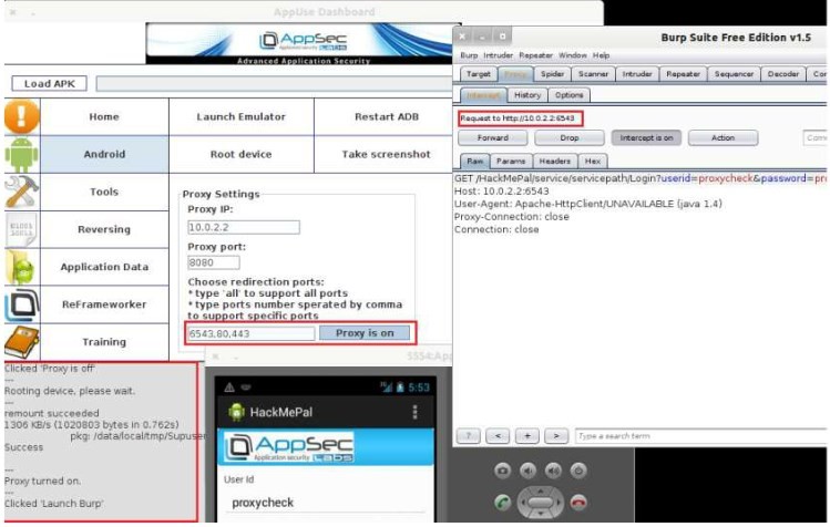 Install Burp Certificate按钮允许AppUse在模拟器中安装Burp证书,在下一个版本中,它将在任何设备连接AppUse VM时安装burp证书。