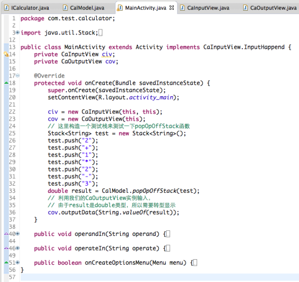 ICalculator 接口的 Model 类,并代替原来的 CalMode 则可。当需要增加功能时,可以将代码增加到对应的模块处而不用随意写在一起。