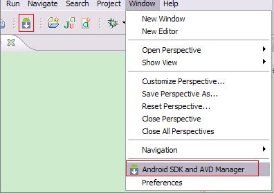 工具栏看到象征 Android 的机器人图标及 Window 菜单栏中 ADT 的选项,见图 8。
